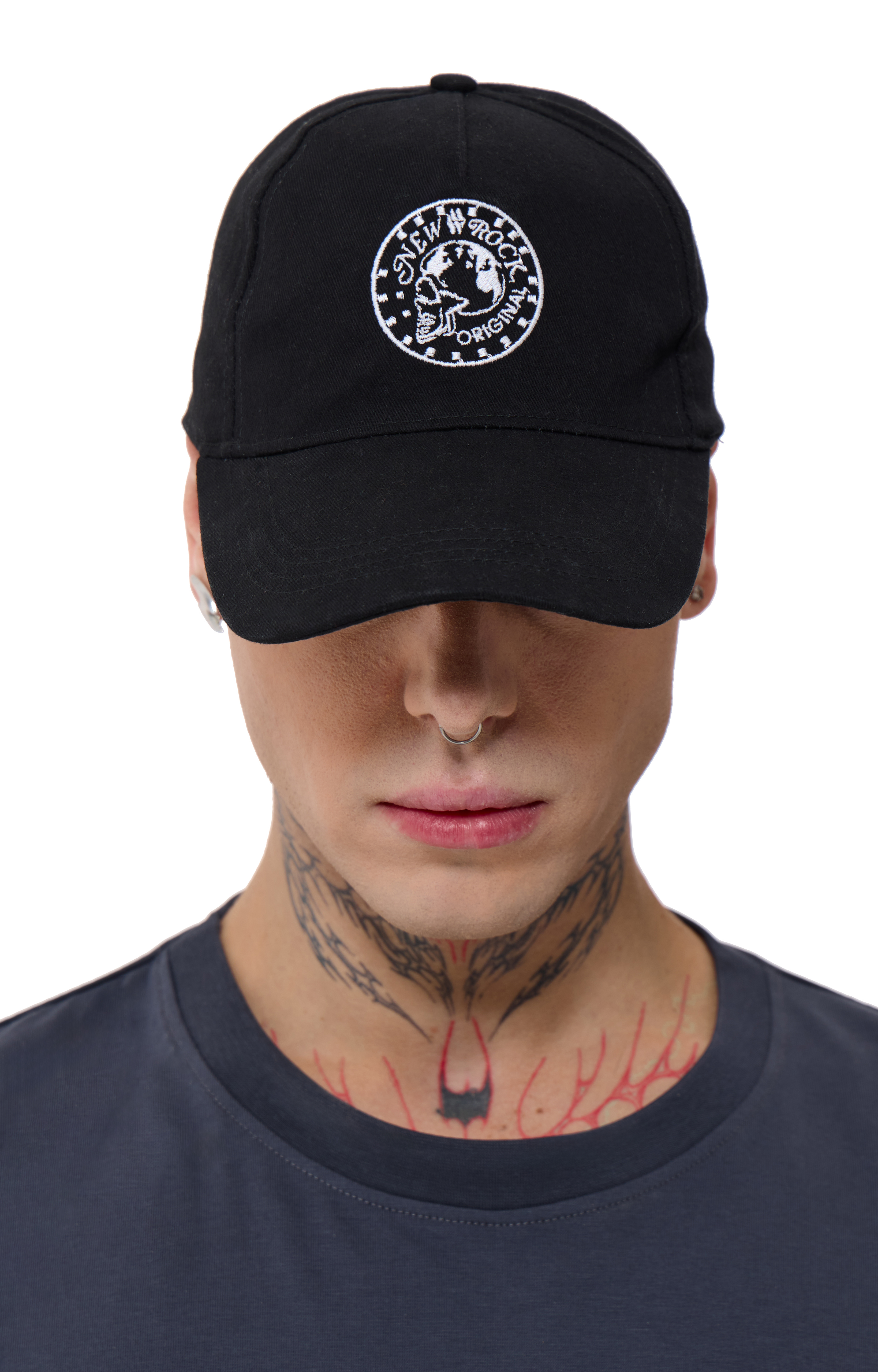 Кепка New Rock чёрного цвета из полиэстера с логотипом бренда New Rock белого цвета.