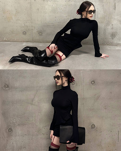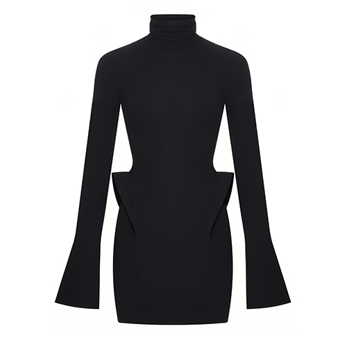 С элегантным высоким горлом, оно подчеркивает каждый изгиб, при этом создавая эффект кошачьего силуэта — грациозного и уверенного.