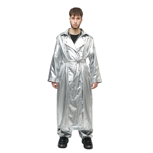 Тренчкот серебряного цвета из лаковой коллекции MIRBA LACQUER из лаке и полиэстера.