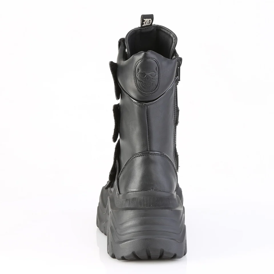 Ботинки Echo-110 не просто выглядят стильно — они создают эффектный образ. Массивная расклешенная платформа и яркие детали, такие как ремешки в форме косточек и язычок с шипами и кольцом в форме подковы, — эти ботинки созданы для тех, кто ценит стиль с лёгкостью. Внутренняя молния делает модель простой, а чёрная веганская кожа сохраняет её чистой. Идеально подходят для вечерних выходов, фестивалей или просто для того, чтобы добавить немного изюминку в ваш повседневный образ. Если вы ищете ботинки, которые будут говорить за вас, то это то, что вам нужно.