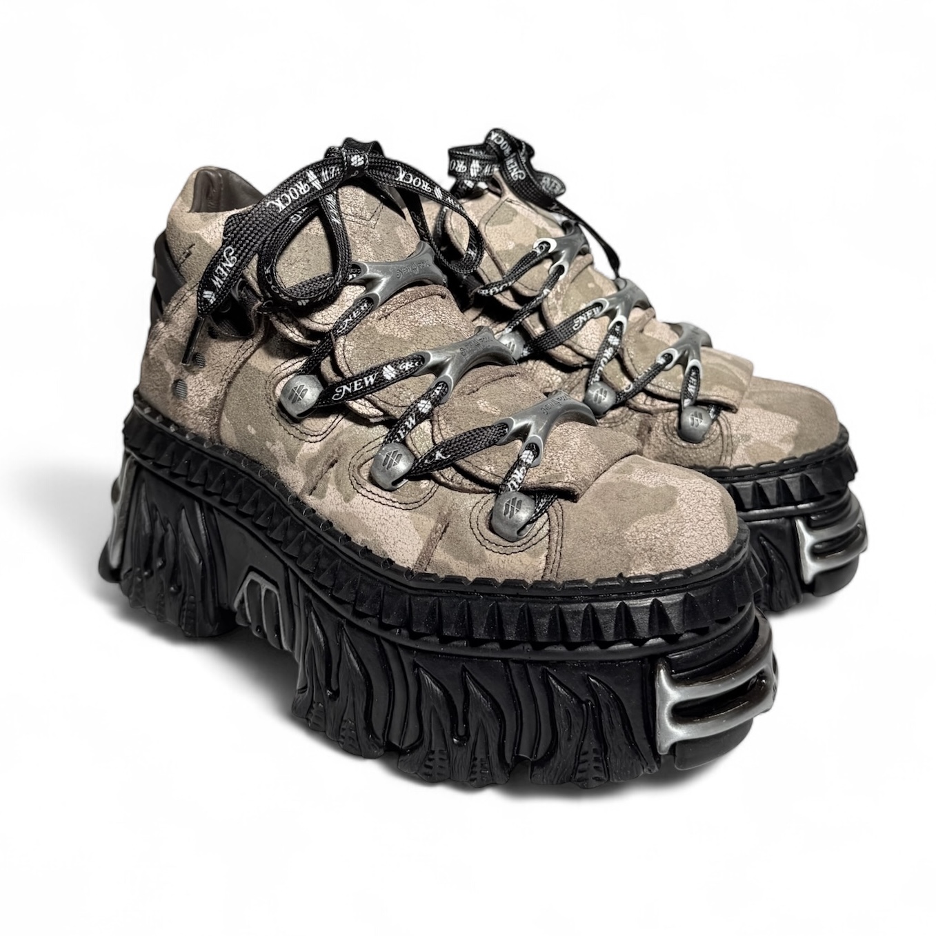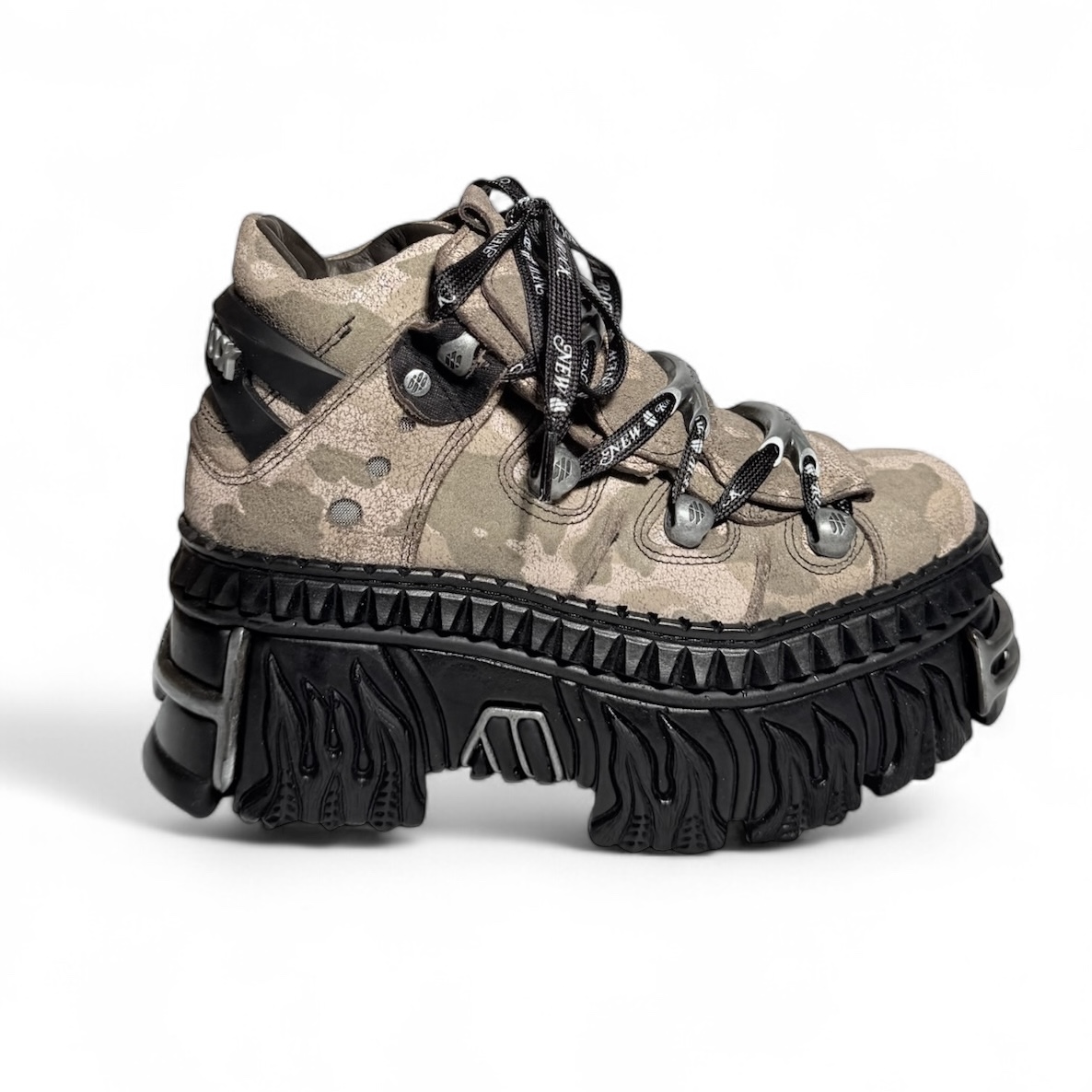 Эффектные кроссовки от бренда New Rock из натуральной кожи с дизайнерскими элементами сзади ботинка. Массивная подошва New Rock Tower Flame.