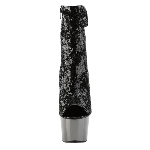 Будьте в центре внимания с туфлями Adore-1008SQ, созданными для того, чтобы ослеплять. Благодаря высокому каблуку-шпильке и хромированной платформе эти туфли обеспечивают желаемый рост и стиль, которого вы заслуживаете. Голенище с рюшами и открытым носком создают шикарный образ, а внутренняя застежка на молнию обеспечивает удобство в носке. Черно-серая цветовая гамма придает этим ботинкам элегантный вид, что делает их идеальным дополнением к любому смелому гардеробу.