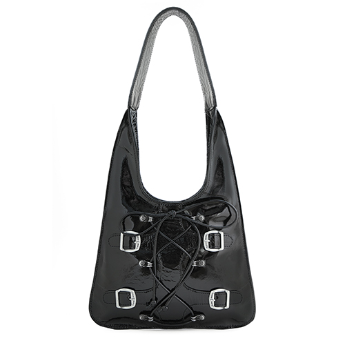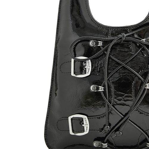 Лаковая мини-сумка с цельным ремешок. Подклад - красный текстиль.