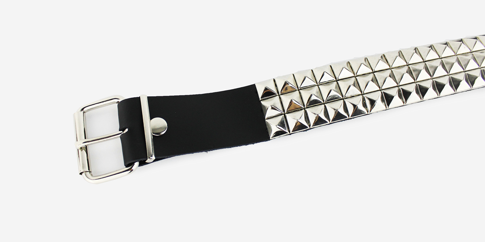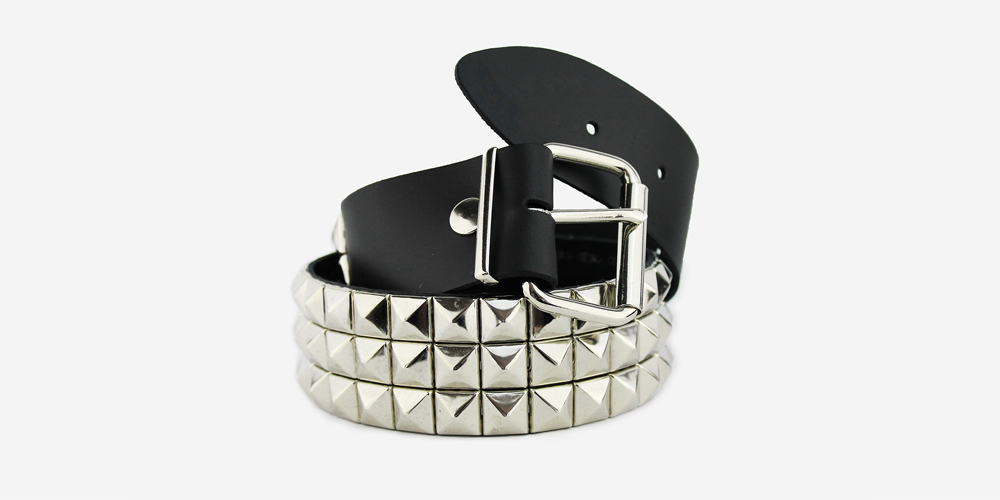 Ремень бренда Underground чёрного цвета с тремя рядами пирамид из натуральной кожи