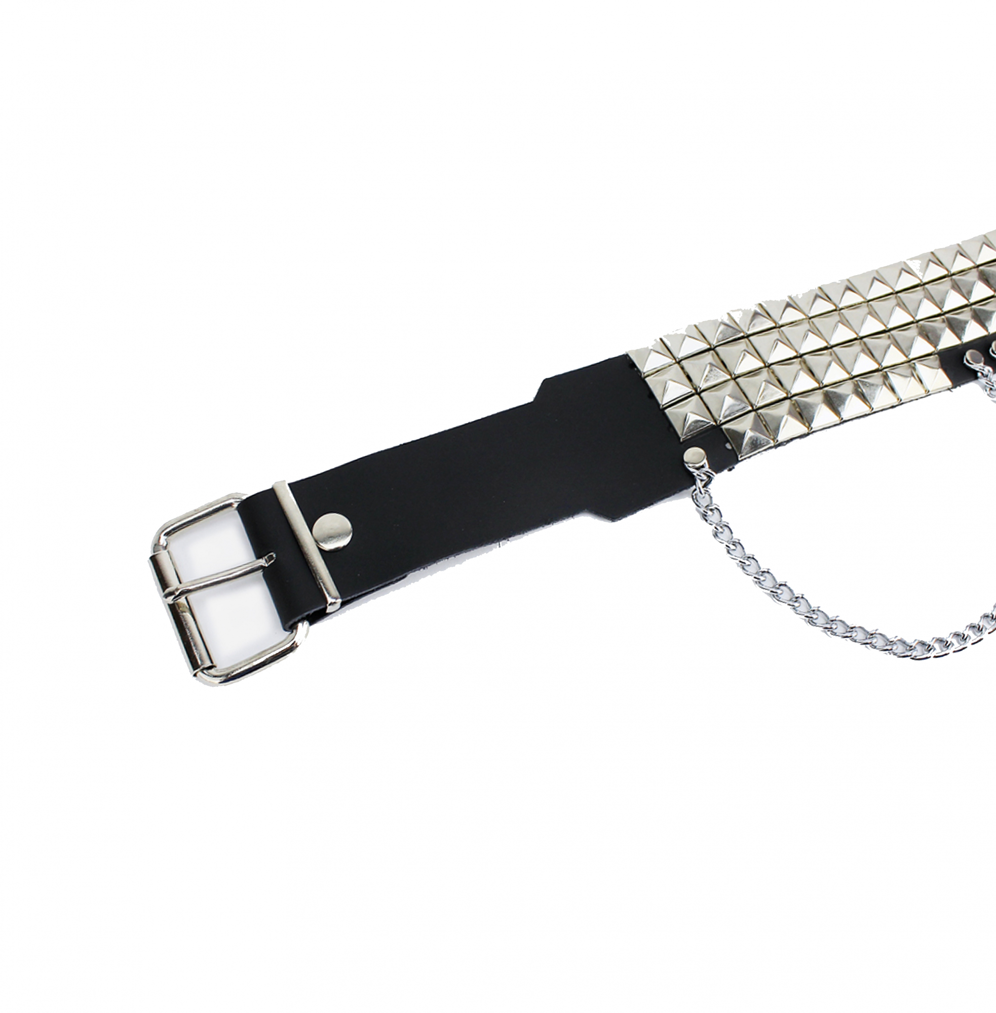Ремень – черный кожаный – 4 ROW NICKEL PYRAMID STUDS & CHAINS
