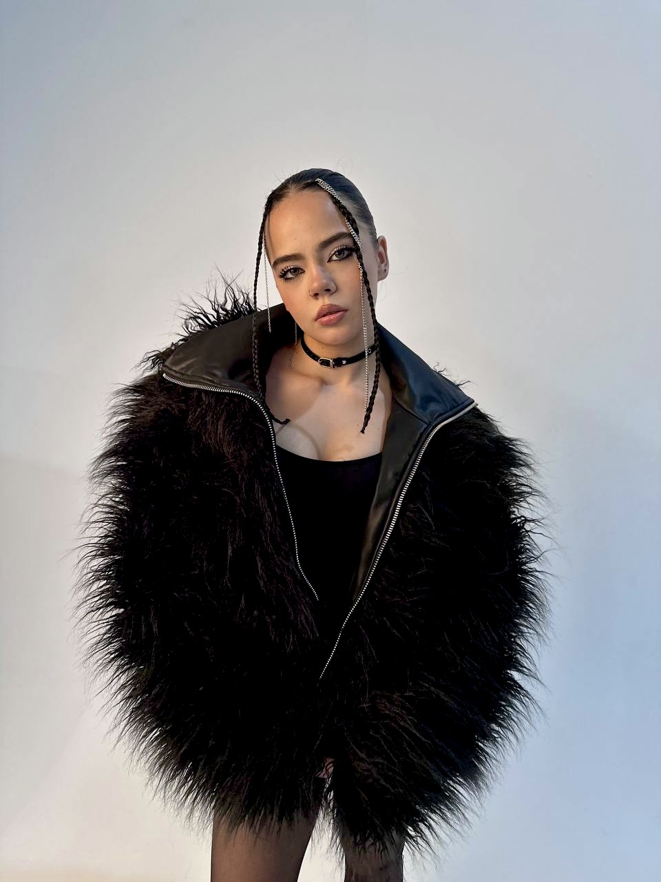 Шуба черная от MIRBA оверсайз из искусственного меха лама. Утепленный подклад 70% шерсть, 30% полиэстер. Подклад полиэстер