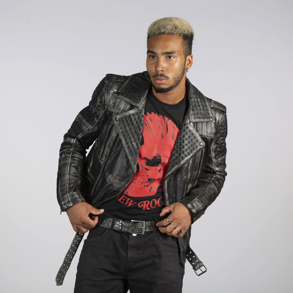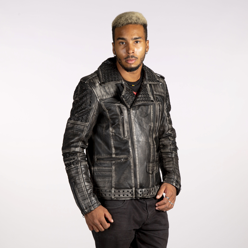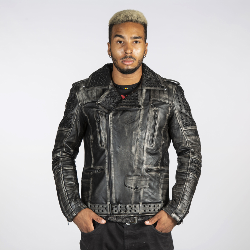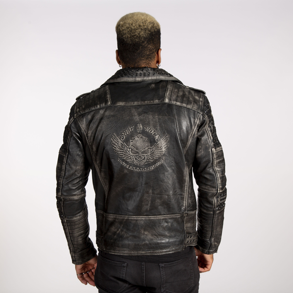 Куртка-косуха New Rock из натуральной кожи серого цвета. С ремнем на поясе