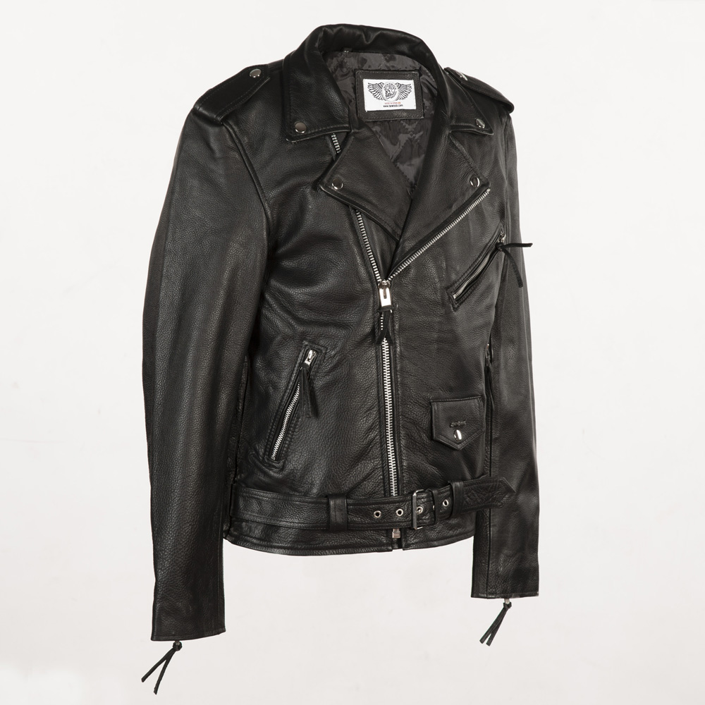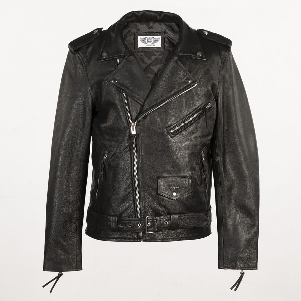 Куртка-косуха из натуральной кожи чёрного цвета с ремнем.