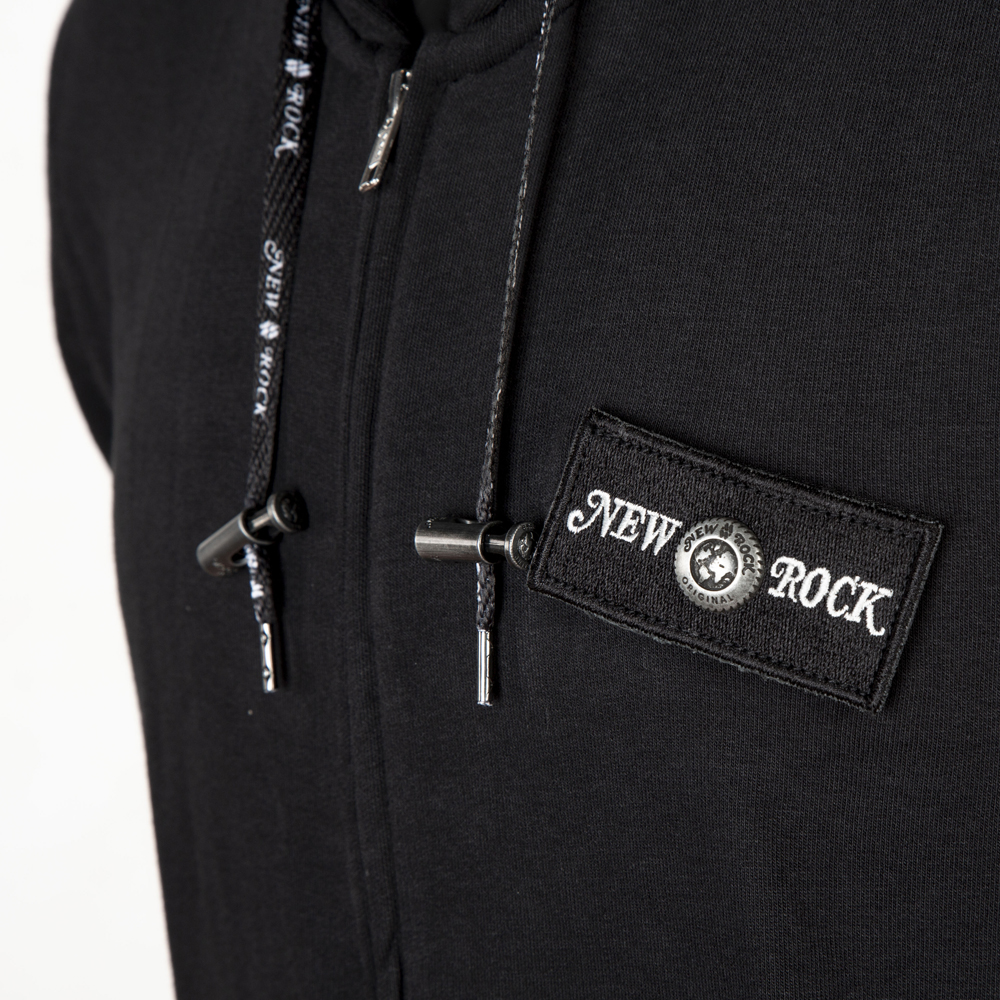 Худи-унисекс New Rock чёрного цвета из хлопка и полиэстера.