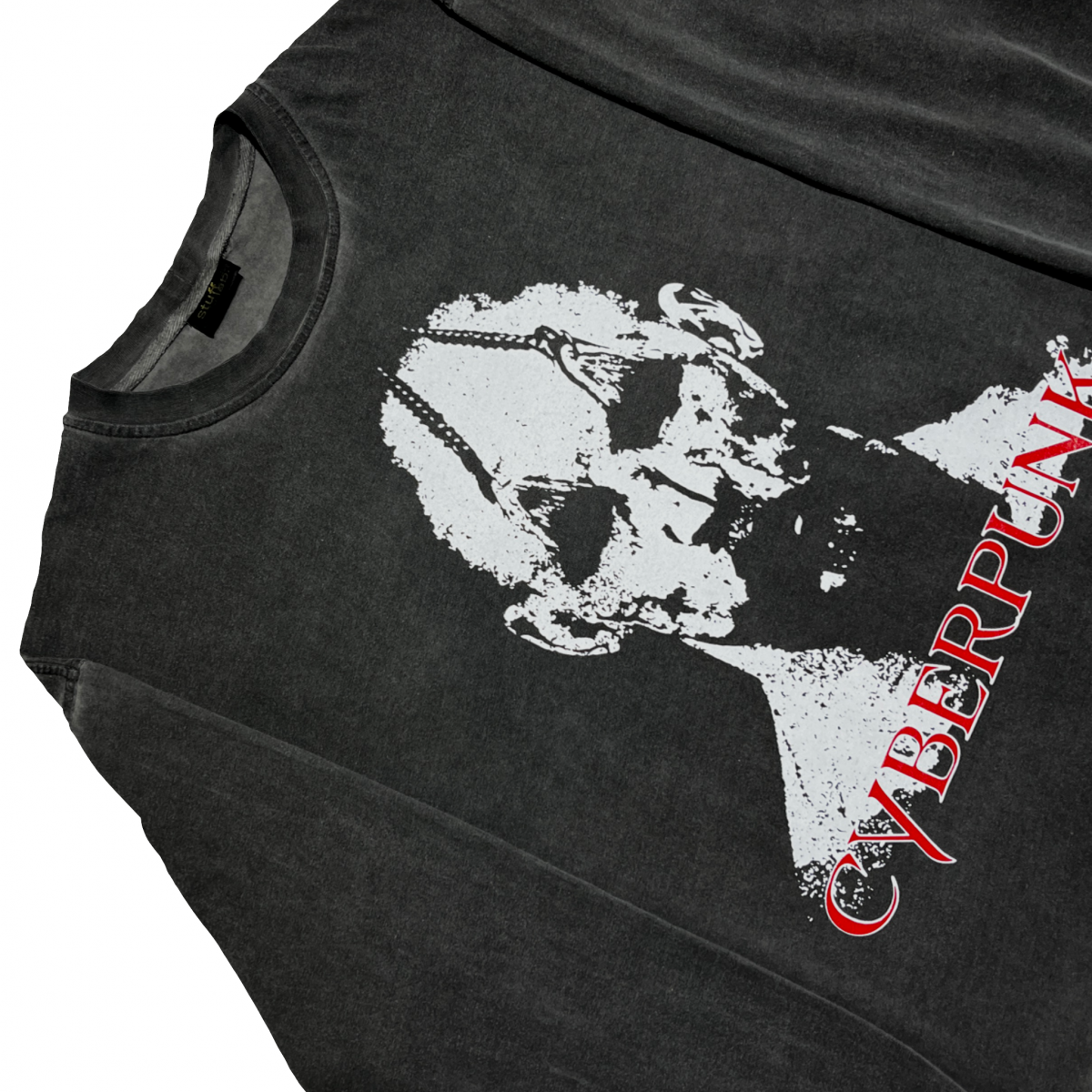 Лонгслив из плотного хлопка, окрашенный по технологии Garment Dyed. Печать — шелкография.