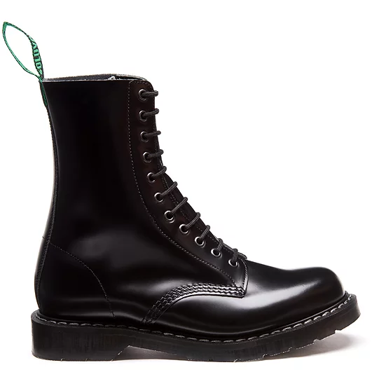 Ботинки бренда Solovair из натуральной полированной кожи с покрытием hi-shine классического черного цвета. Подошва Solovair Suspension Classic, подклад текстиль. Модельные, всесезонные, взрослые, унисекс.
