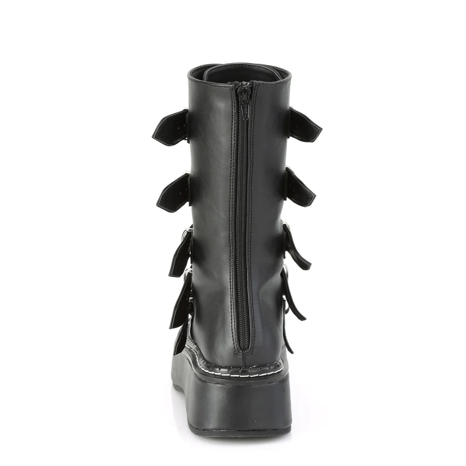 Наши сапоги Emily-330 до середины голени — идеальный выбор для модниц, стремящихся произвести впечатление. Эти сапоги с платформой высотой 5 см и пятью пряжками с цветным покрытием созданы, чтобы привлекать внимание. Металлические пластины в форме сердца по центру каждого ремня добавляют нотку игривости, а чёрная веганская кожа обеспечивает прочность и комфорт. Для дополнительного удобства эти сапоги оснащены металлической застёжкой-молнией сзади, позволяющей легко надевать их. Заявите о себе с помощью эффектного дизайна сапог Emily-330.