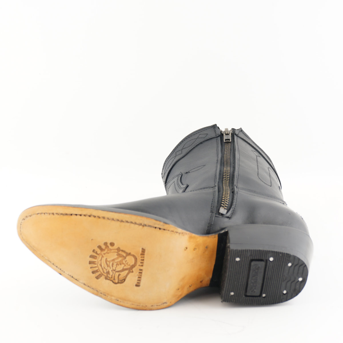 Эффектные сапоги-казаки бренда Grinders из натуральной кожи чёрного цвета. Подошва и подклад также сделаны из кожи.