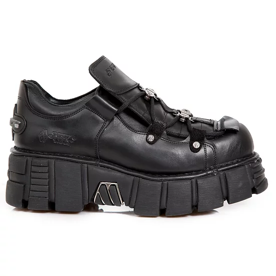 Легендарные полуботинки New Rock чёрного цвета для взрослых, модельные, унисекс. Подошва New Rock Classic чёрного цвета со съёмными декоративными металлическими элементами. Шнурки черного цвета. На язычке ботинка присутствует логотип New Rock. На пятке пластиковый декоративный элемент с логотипом New Rock чёрного цвета. Материал подошвы PU с выдавленным логотипом New Rock на пятке и в районе свода стопы.