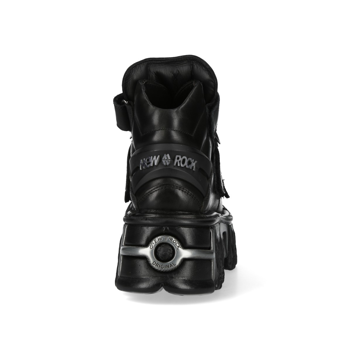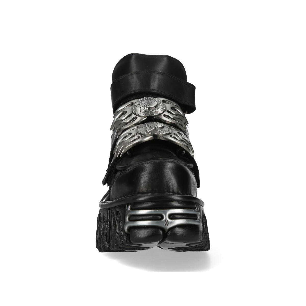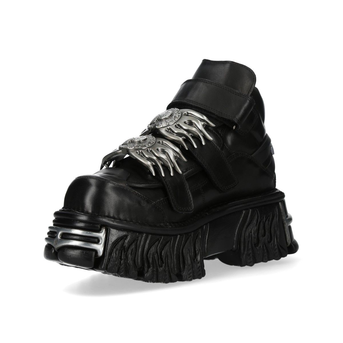 Эффектные кроссовки от бренда New Rock из натуральной кожи с дизайнерскими элементами сзади ботинка. На липучках металлические пряжки. Массивная подошва New Rock Flame с металлическими деталями.